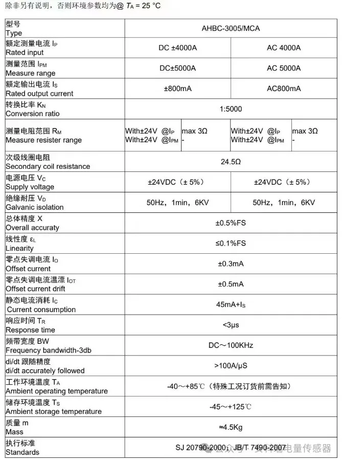 AHBC-3005/MCA閉環(huán)霍爾電流傳感器光伏逆變器、大功率電源用