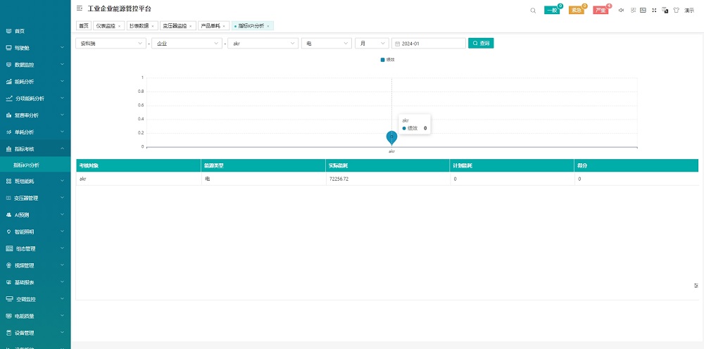 對各類能源使用、消耗、轉(zhuǎn)換,按班組、區(qū)域、產(chǎn)線、工段等進行日、周、月、年、指定時段績效統(tǒng)計按照能源計劃或定額制定的績效指標進行KPI比較考核,幫助企業(yè)了解內(nèi)部能效水平和節(jié)能潛力。