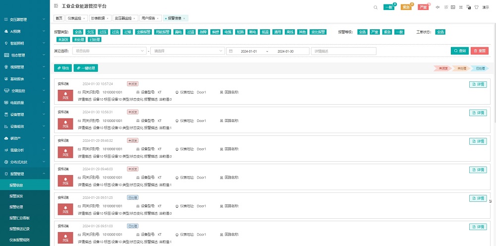 對企業(yè)各點位的能源使用、報警等情況進行實時的監(jiān)控。以便企業(yè)用戶能夠?qū)崟r的監(jiān)測各個點位的運作情況,同時能更快速的掌握點位的報警。