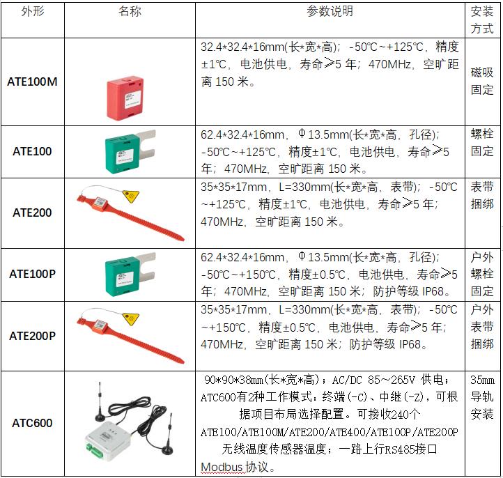 根據(jù)上述要求,故此選擇安科瑞的無(wú)線測(cè)溫產(chǎn)品如下表。