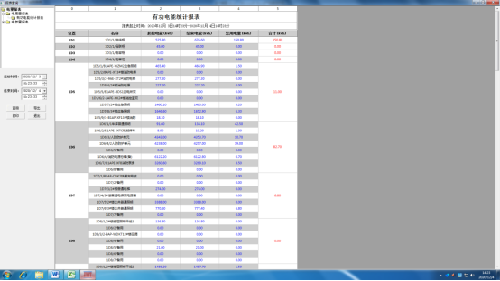 電能報(bào)表是對用電量的管理以報(bào)表形式呈現(xiàn),該報(bào)表可以實(shí)現(xiàn)系統(tǒng)運(yùn)行期間的任意時間段內(nèi)的月抄表,日抄表,小時抄表等功能,且可以Excel形式導(dǎo)出或打印。界面如圖5所示。