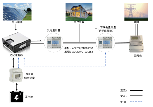 但也有部分國家并不允許私人光伏發(fā)電輸入到電網(wǎng)當(dāng)中或者說不會對私人光伏發(fā)電設(shè)施對電網(wǎng)供電提供補貼,此時的用戶為盡量延長設(shè)備壽命往往會采用完全自發(fā)自用模式,即多用多發(fā)、少用少發(fā)。這種模式下智能電能則需要為逆變器提供實時雙向功率、電能來支持逆變器的儲能判斷功能和防止其向電網(wǎng)供電。