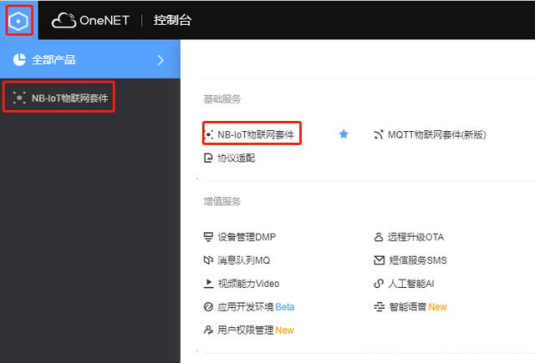 進入平臺開發(fā)者中心的NB-IOT物聯(lián)網(wǎng)套件