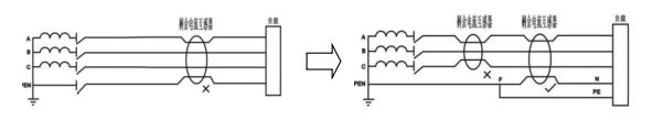 For the TN-C systems, residual current relays cannot be used. Because the PE wire and the N wire are integrated, if the PEN wire is not repeatedly grounded, when the shell is energized, the current in and out of the transformer is equal, and the ASJ refuses to move; if the PEN wire is repeatedly grounded, part of the single-phase current will flow into the repeated grounding. After reaching a certain value, ASJ malfunctioned. It is necessary to transform the TN-C system into a TN-C-S system, which is the same as the TN-S system, and then connect the residual current transformer to the TN-S system.