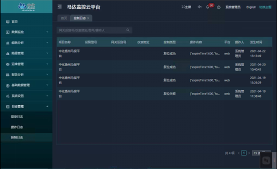 管理員在此界面鍵入用戶名、密碼登錄至馬達(dá)監(jiān)控云平臺(tái)首頁,進(jìn)行數(shù)據(jù)查看及操作。